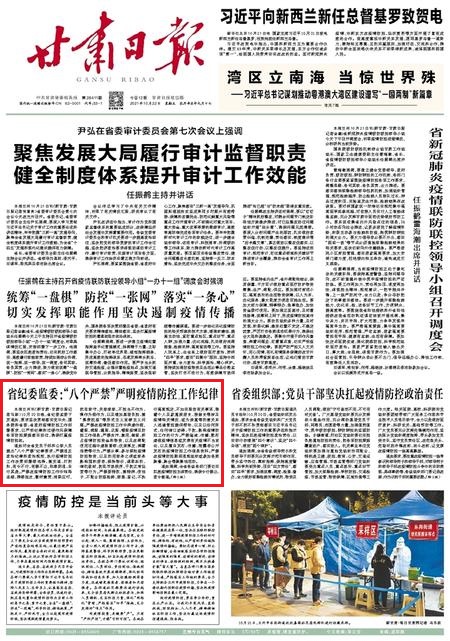 10月20日晚,省纪委监委下发通知,要求坚决贯彻落实党中央、国务院和省委、省政府疫情防控工作部署要求,以严明纪律和过硬作风保障各项防控措施落实到位,确保打赢疫情防控战。