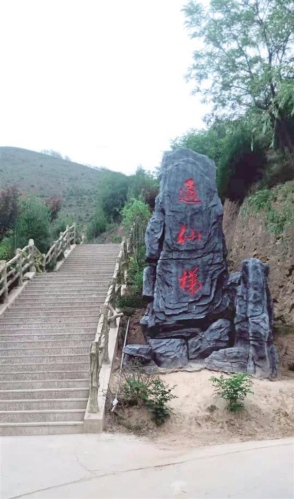 一条羊肠小道蜿蜒了千年,承载了无数游览者匆匆的步履,在人们无数次的畅想中,化成了一条金光大道,让老人、孩童和物资可直达寺窟门外。醒目的“通仙梯”石刻指引人们沿着游步道拾级而上,领略绿树掩映、曲径通幽的绝好胜景,金黄的叶子在浓密的绿叶间格外鲜亮,松树和柏树你挤着我,我挨着你,密密匝匝,在五月的阳光和微风中,吟唱着生命的赞歌。白色槐花香气馥郁,红色槐花鲜艳夺目,它们从高高的枝头垂下来,或从山崖斜伸而出,或与游人摩肩而过,或者亲呢的抚摸一下游人的笑脸。掩映绿树中的亭子,是一道绝好的景观,让人产生一种遐想和逗留的念想。亭子旁叫不出名的小鸟轻盈的飞舞和欢快的鸣叫,增添了一种活泼美妙的情趣。这情趣给花树、亭子带来一种灵性,频添了无限韵味和妙趣。