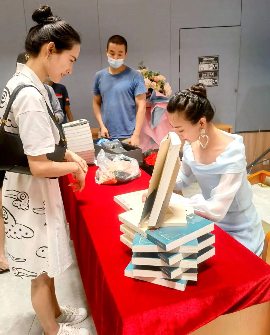 见面会还设计了互动环节,主编李莉现场教学,五位敦煌舞爱好者认真模仿,作者还向参与互动的读者赠送了本书。在签售环节后,作者及参演人员和读者合影留念。