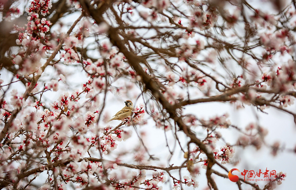 在肃州区金佛寺镇的观山口连片杏林看到,漫山遍野的杏花粉如胭脂,白如脂玉,格外娇艳,把戈壁深处的小山村装点得美若仙境,吸引了众多周边的市民游客前来赏花踏青。