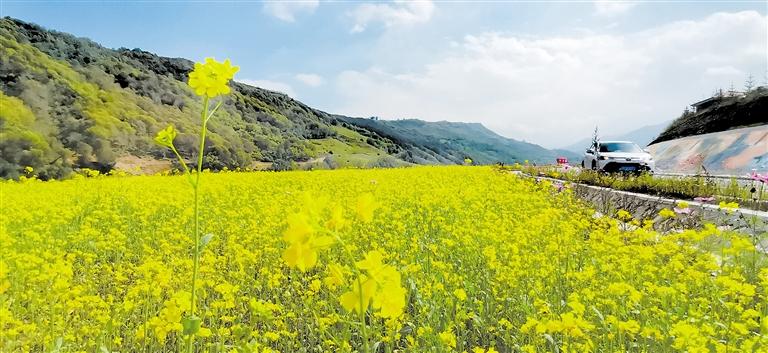 金秋时节,沿太子山旅游风情大通道临夏县段景色如诗如画,油菜花、墙体彩绘与远山、蓝天白云相映成辉,令人赏心悦目。