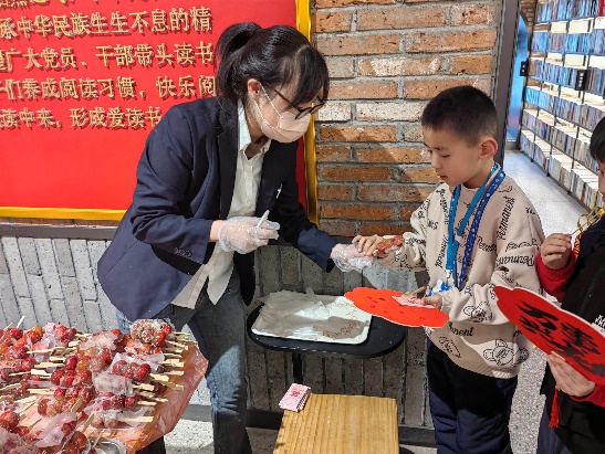 2月24日元宵佳节,兰州市张掖路新华书店携手城关区妇女联合会、山字石社区及大众巷社区,开启书香福扇印章打卡活动,并特别制作了传统冰糖葫芦,邀广大读者来一场“书香游园”。
