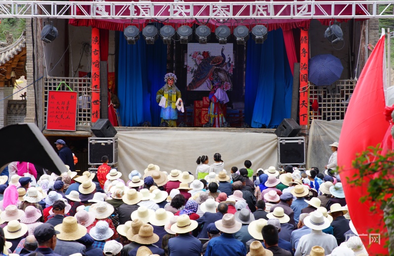 精彩的秦腔演出吸引群众观看(央广网发 魏国江 摄)