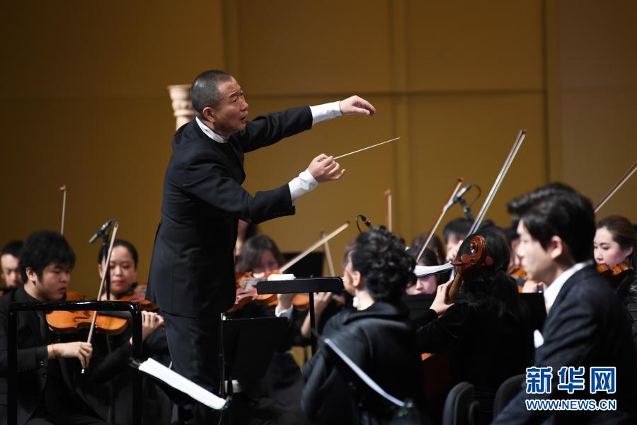 12月26日,指挥家谭盾在兰州音乐厅指挥《敦煌·慈悲颂》交响音乐会。新华社记者 陈斌 摄
