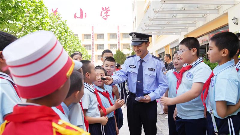 静宁县城关派出所为突出预防在先、源头治理、多点发力,创新宣防工作方法,开启广泛宣传、精准宣传、融合宣传模式,在“六一”国际儿童节来临之际,城关派出所民警走进南关小学,开展“六一”反诈宣传活动。