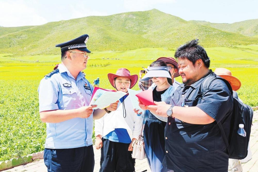 自7月旅游高峰期以来,民乐县扁都口景区迎来了大量游客。为确保景区安全,民乐县公安局提前布警,全方位服务,深耕旅游警务,擦亮旅游品牌,打造平安景区。