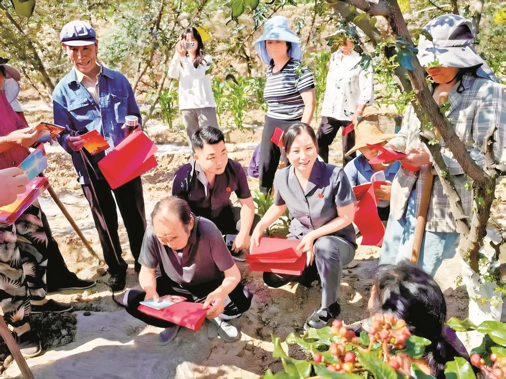 安化法庭干警走进花椒种植园,与村民围坐交流,现场答疑解惑。 武都区法院供图
