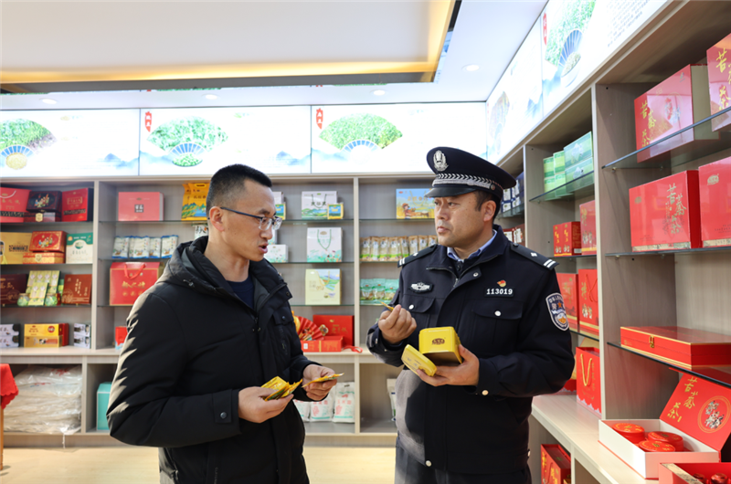 ▲通渭县公安局经侦大队民警深入辖区食品公司,开展普法宣传和风险隐患排查活动。(孛金鹏 摄)