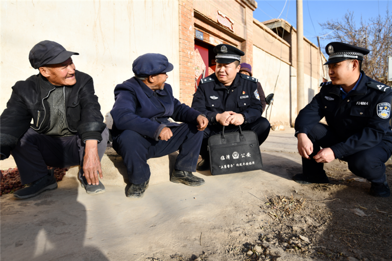 ▲临泽县公安局沙河派出所民辅警深入辖区村庄开展冬季用火、用电安全检查,同时向群众宣传冬季生炉取暖的安全防范常识。(安学海 摄)