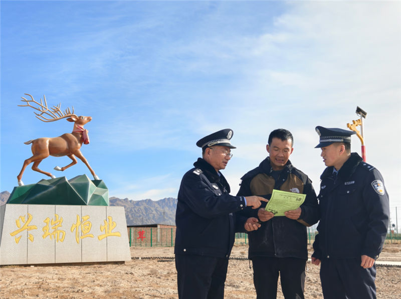 ▲山丹县公安局清泉派出所民辅警深入辖区梅花鹿养殖基地,了解冬季梅花鹿养殖情况,开展隐患排查、治安巡防、反诈宣传、纠纷调解等护企安商工作。(尚婧 摄)