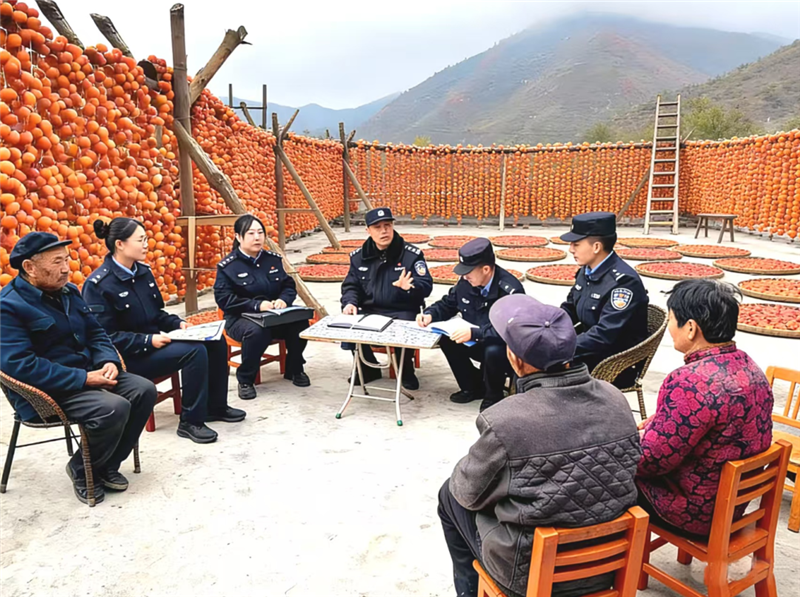 ▲舟曲县公安局城关派出所民辅警深入辖区柿子晾晒场和柿子收购点,开展反诈宣传活动。(朱彤 摄)