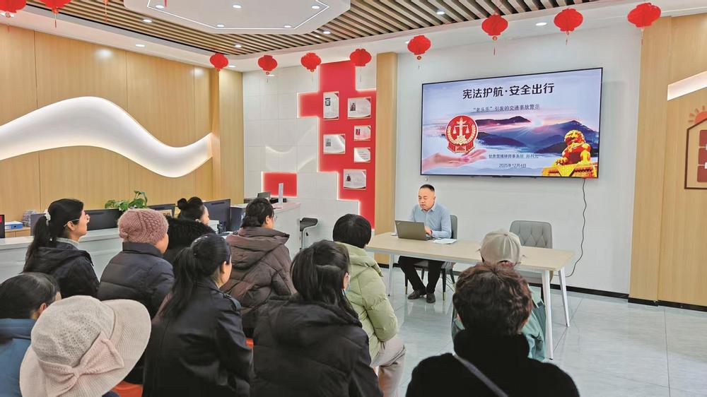 律师在社区开展“宪法护航·安全出行”主题普法讲座。