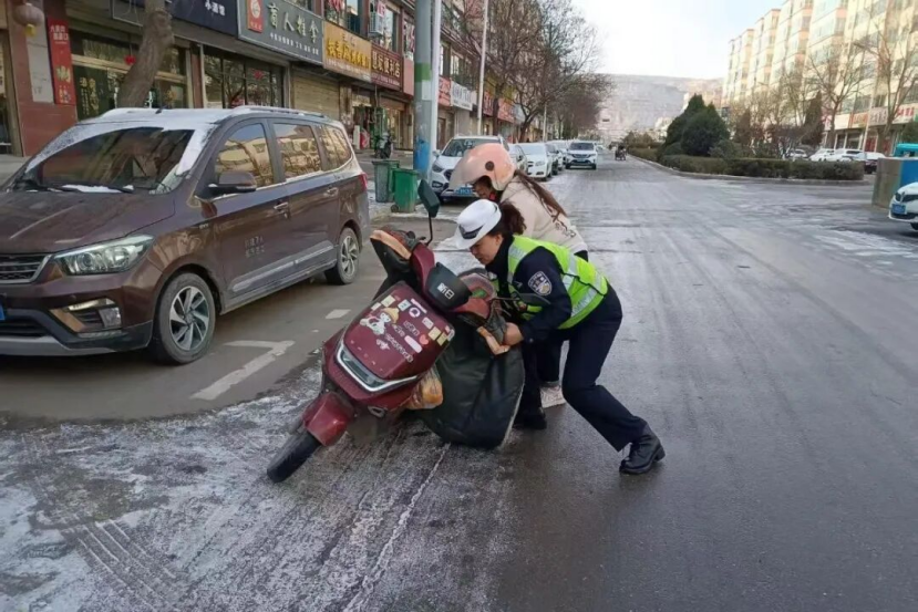 雨雪寒潮之中,定西公安交警始终坚守岗位,在疏堵保畅的同时,化身“暖心卫士”,主动为受困群众和车辆提供贴心救助。面对积雪路面车辆打滑、抛锚等突发情况,民辅警们不畏严寒,俯身推车、帮助安装防滑链、排查车辆故障;针对出行不便的老人、学生等群体,主动搀扶护送,耐心解答指引、提供应急帮助。一幕幕暖心瞬间在雨雪街头不断上演,赢得过往群众纷纷点赞。