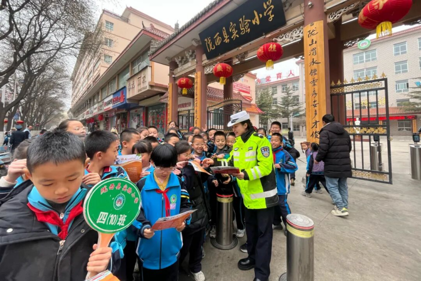 定西公安交警提前研判寒潮、雨雪恶劣天气对道路交通的影响,依托公安交警新媒体平台和主流媒体广泛发布预警提示信息,引导公众合理规划行程、谨慎驾驶、安全出行。同时,紧扣开学季交通出行特点,同步开展交通安全宣传活动,民辅警走进校园向师生普及雨雪天气出行常识、乘车安全规范等,全方位、多角度筑牢校园周边交通安全防线,护航学生平安上学路。