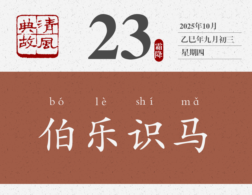 春秋秦穆公时,有一个著名的相马师叫孙阳。因为神话传说中,掌管天马的神仙叫伯乐,人们为了表示对孙阳的敬佩,就称他为伯乐。屈原《九章•怀沙》以及《庄子•马蹄》《列子•说符》都曾经提到过伯乐。《战国策•楚策四》里,春申君的舍人汗明,向春申君讲了一个关于千里马的故事:“夫骥之齿至矣,服盐车而上太行。蹄申膝折,尾湛胕溃,漉汁洒地,白汗交流,中阪迁延,负辕不能上。伯乐遭之。下车攀而哭之,解纻衣以幂之。骥于是俛而喷,仰而鸣,声达于天,若出金石声者,何也?彼见伯乐之知己也。”