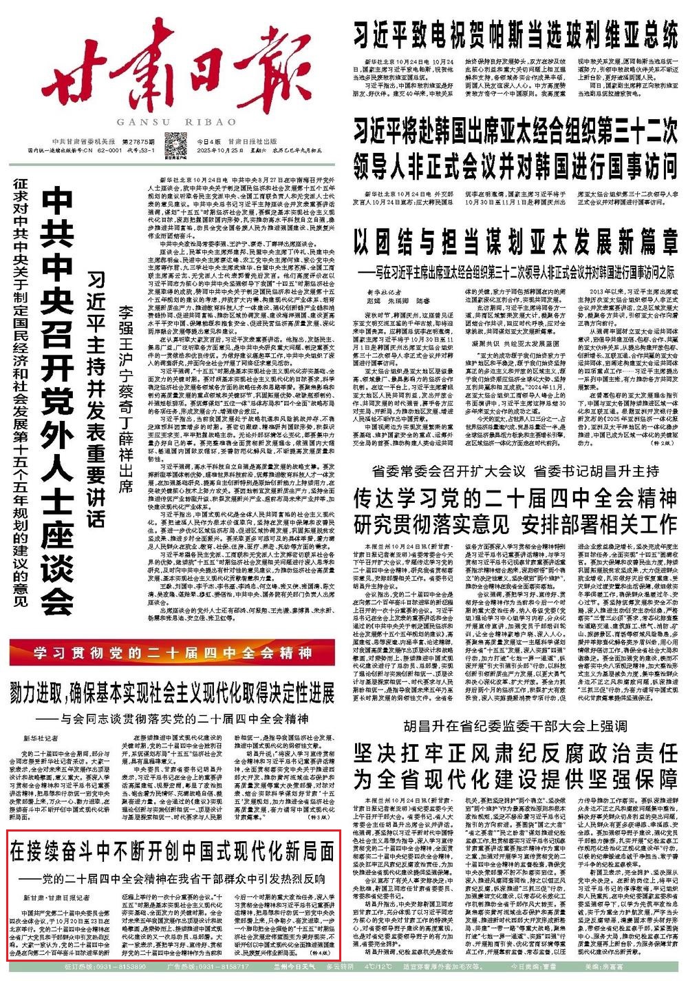 《甘肃日报》2025年10月25日 第1版