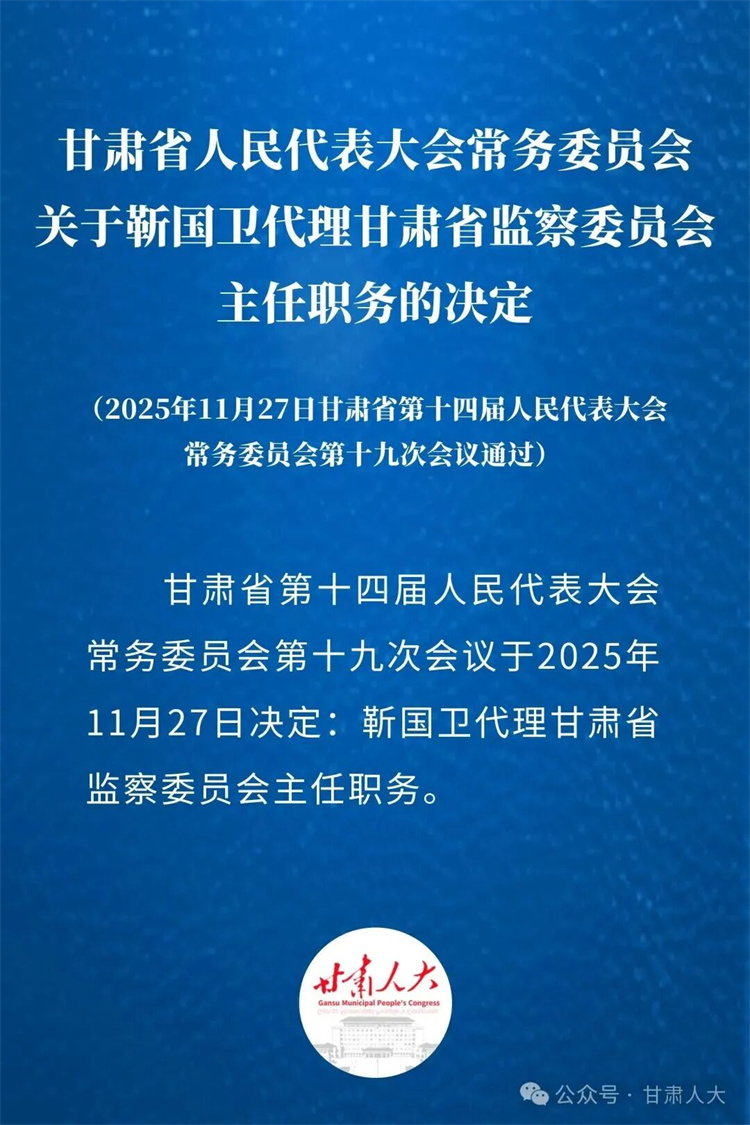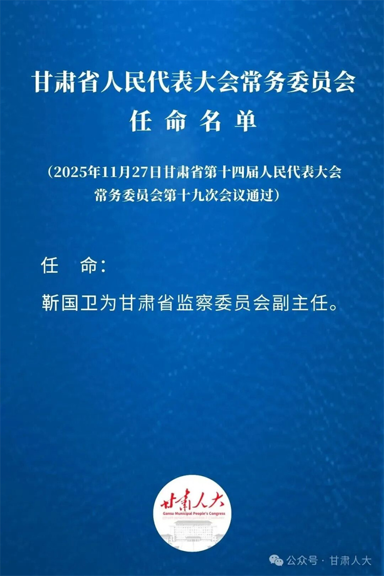 靳国卫任甘肃省监察委员会副主任,代理省监察委员会主任职务