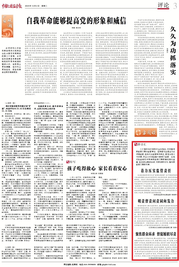 纪委监委的职责定位是“监督的再监督”,在于推动职能部门依法依规履行其法定监管职责,形成各司其职、层层负责的治理闭环。实践中,若纪检监察机关越俎代庖,直接介入本应由行业主管部门负责的具体监管事务,不仅会偏离主责主业,亦可能导致监管部门产生依赖心理,弱化其主动作为的内生动力,形成“监督替代”下的监管惰性。因此,必须将监督靶向聚焦于职能部门是否履职、如何履职、履职效果等,通过精准科学的问责、对症施治的纪检监察建议,推动其扛起监管责任,保障监管责任不空转、不走样,实现监督与监管同频共振。