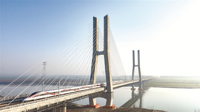 二十届中央纪委四次全会强调,促进保持公平公正的市场环境、风清气正的营商环境。正风反腐带来营商环境之变,吸引企业投资落地,推动经济高质量发展。沪渝蓉沿江高铁武宜段全长314公里,设计时速350公里,是我国“八纵八横”高铁网沿江通道的重要组成部分。图为在湖北荆门钟祥市境内,列车行驶在沪渝蓉沿江高铁钟祥汉江特大桥上。新华社发(金伟 摄)