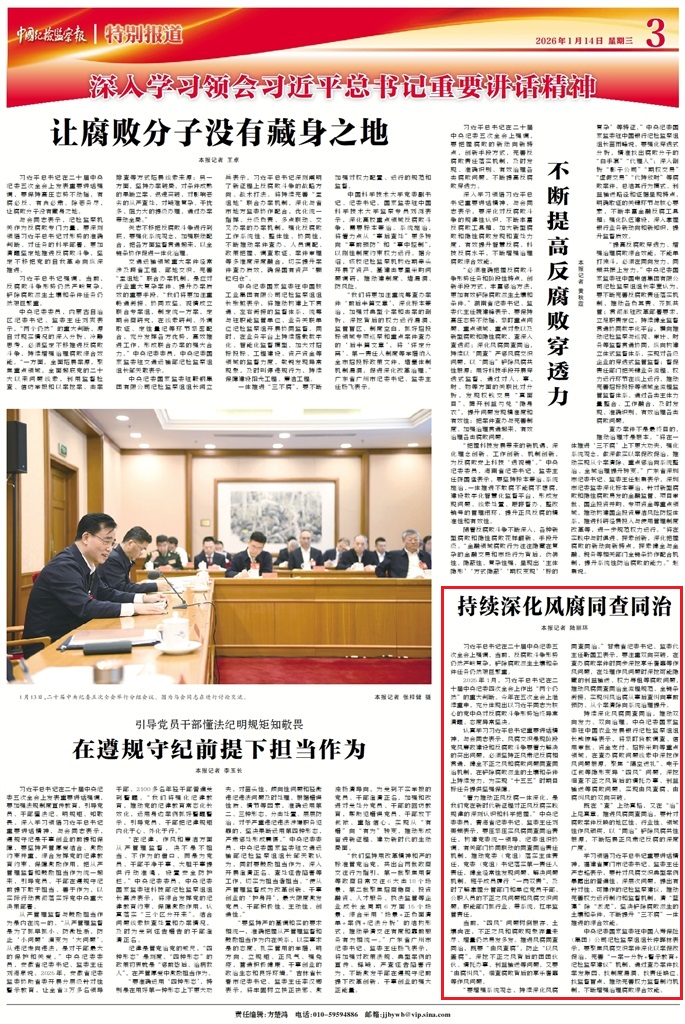 “要增强系统观念,持续深化风腐同查同治。”甘肃省纪委书记、监委代主任靳国卫表示,要注重双向突破,在查办腐败案件时同步深挖享乐奢靡等作风问题,在处理作风问题时深挖可能隐藏的利益输送、权力寻租等腐败问题,推动风腐同查同治全流程规范、全链条衔接,实现纠风治腐从事后查纠向事前预防、从个案清除向系统治理提升。