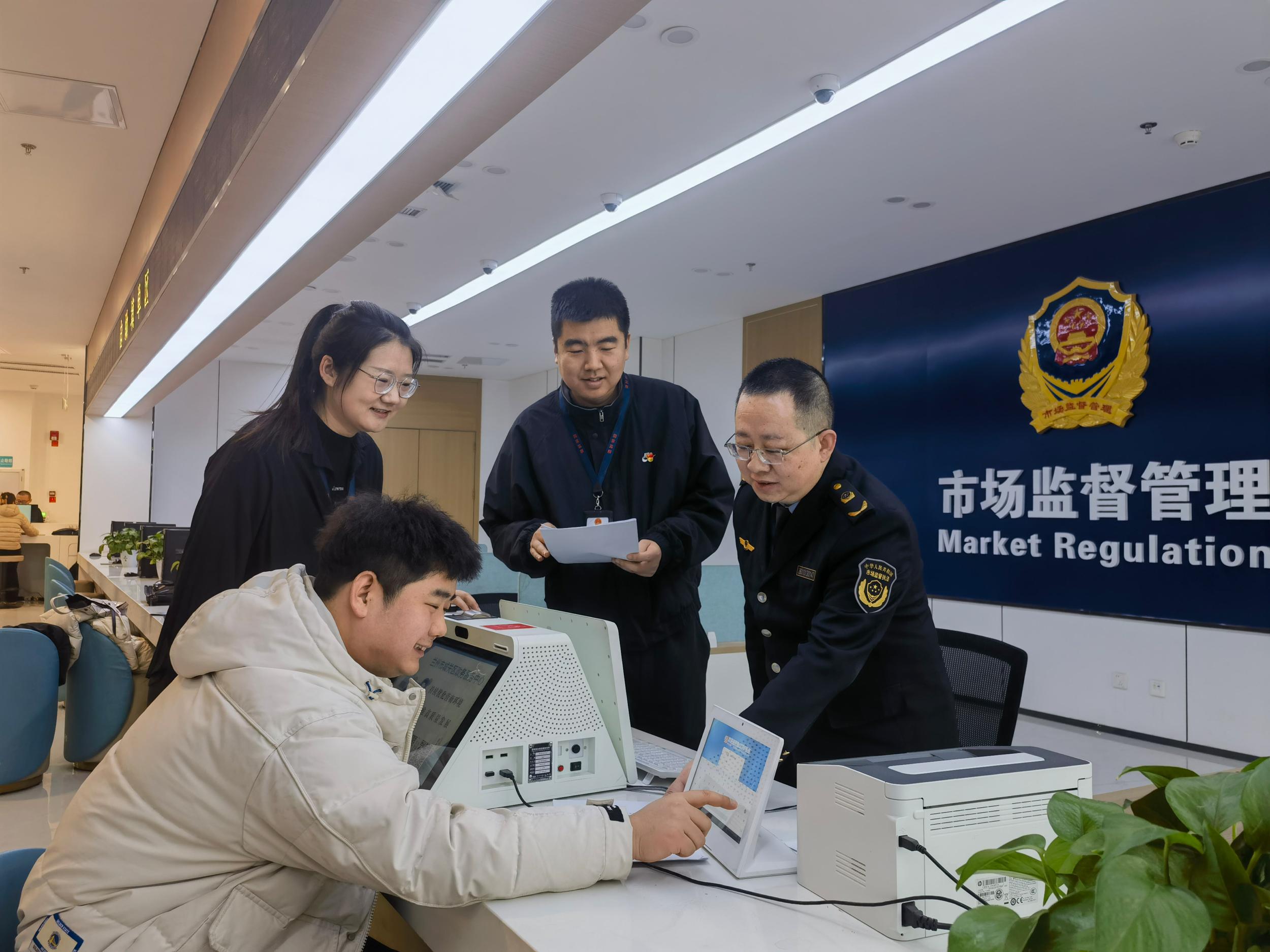 甘肃省兰州市纪委监委持续推进政治监督具体化精准化常态化,聚焦政务服务关键环节,开展监督检查,助力优化营商环境。图为该市城关区纪检监察干部在区政务服务中心走访了解相关情况。宋倩倩 摄