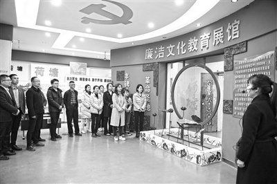 江西省景德镇市纪委监委充分挖掘本土廉洁文化资源,推动建立生动的廉洁教育实体课堂,着力锻造忠诚干净担当、敢于善于斗争的纪检监察铁军。图为该市纪委监委干部参观景德镇荷塘廉洁文化教育基地,接受廉政教育。欧阳晨君 摄