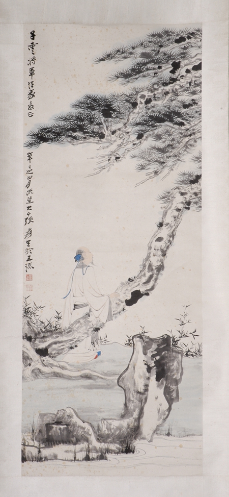 张大千长松高士轴