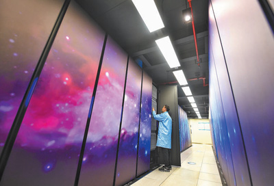 成都超算中心科研人员在巡检机房设备。 新华社记者 刘坤 摄