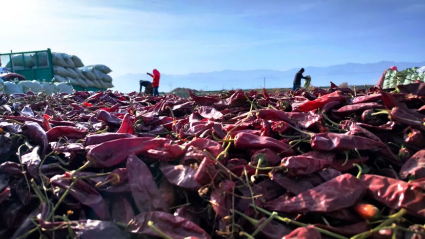 在南华镇礼号村的辣椒种植基地,工人们正在忙碌地装运最后一批辣椒,鲜红的辣椒铺满大地,数百个编织袋装满辣椒,拖拉机往来运输。高台县秀娟农业发展专业合作社负责人许秀娟站在田埂上,望着眼前这片刚刚完成采收的土地,她的脸上洋溢着丰收的喜悦。“今年我们种植了2000多亩辣椒,亩产达到600多公斤,每亩地产值达5200元。”