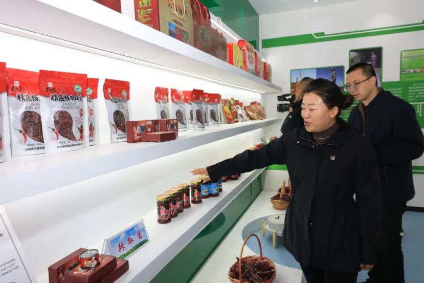 在科技小院的产品展示区,“精品辣椒段”的红色包装在灯光下格外醒目。产品标签上清晰标注着:净含量100g,辣度级别4星,原料产自高台县标准化种植基地。旁边的辣椒酱系列产品采用玻璃瓶包装,标签上印着二维码,扫码即可查看从种植到加工的全流程信息。李娟说:“我们的辣椒产品已入选甘肃省‘甘味’农产品品牌目录。”