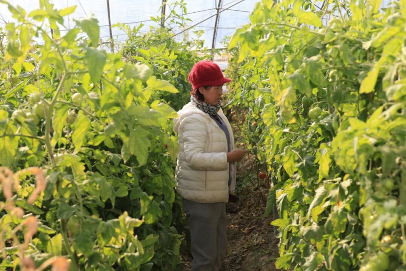 清晨,第一缕阳光洒在张掖市甘州区长安镇二闸村的大棚上,映照着保红英忙碌的身影。戴着红色针织帽的她,在翠绿的西红柿藤蔓间穿梭着,精心照料着即将成熟的果实。这里是甘州有机果蔬科技小院的有机种植基地。
