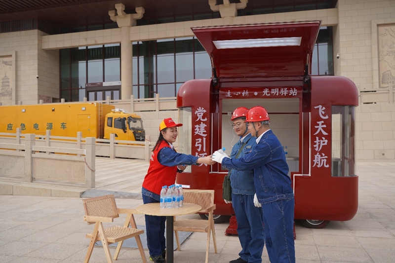 9月20日,在文博会保电现场,一个特殊的服务点吸引了来往者的目光——该公司设立的“连心桥·光明驿站”,站内设置免费充电区、应急补给区、临时休息区,这个由国家电网甘肃电力(飞天)连心桥共产党员服务队和“黄河之滨”志愿者服务队组成的服务站点,在这场文化盛会中发挥着重要作用,为各方来宾和市民游客提供全方位的贴心服务,成为文博会上一道亮丽的风景线。