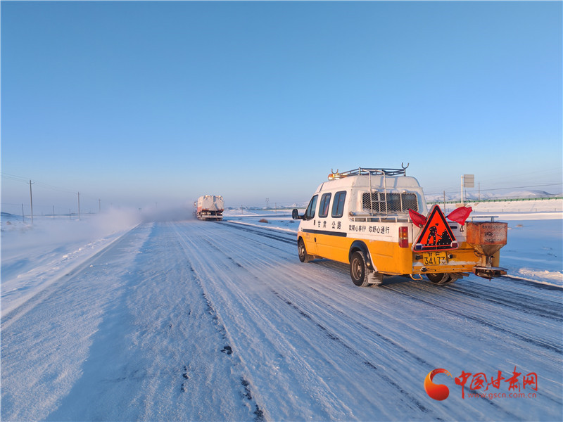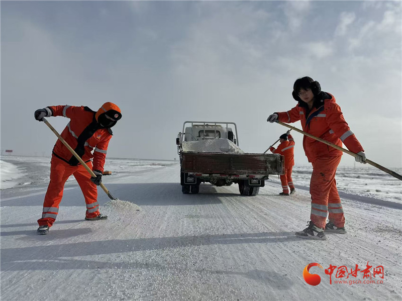 酒泉瓜州:公路人冒着严寒除雪铲冰保畅通