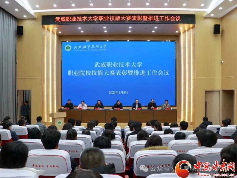 中国甘肃网1月11日讯(西北角·中国甘肃网记者 张振国)1月9日,武威职业技术大学召开职业院校技能大赛表彰暨推进工作会议。党委书记王宏出席会议并讲话。在家校领导班子成员、各学院(部)及职能部门负责人、获奖师生代表以及备战2026年大赛的师生代表共同参会。校长李海军主持会议。