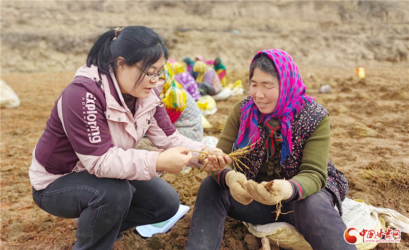 在中药材繁育基地采挖现场,农技人员重点讲解了山旱地黄芩繁育技术、种苗贮存知识,指导农户掌握种苗采挖及贮存的环境温度要求,降低运输过程中因积压温度过高、芦头受损导致的出苗率下降风险,确保高标准育苗和移栽成活率。