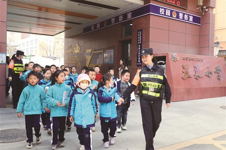 中国甘肃网3月24日讯 据兰州日报报道(记者 伊晓明 通讯员 杨钊)兰州市公安局城关分局五泉派出所立足辖区实际,以五泉小学等学校为重点,常态化开展护学工作。3月23日,上下学高峰时段,民警提前到岗,在校园门口定点值守、护送学生过马路,引导车流有序通行,清理占道经营,确保“见警察、见警灯、见警车”,让家长和师生安心。
