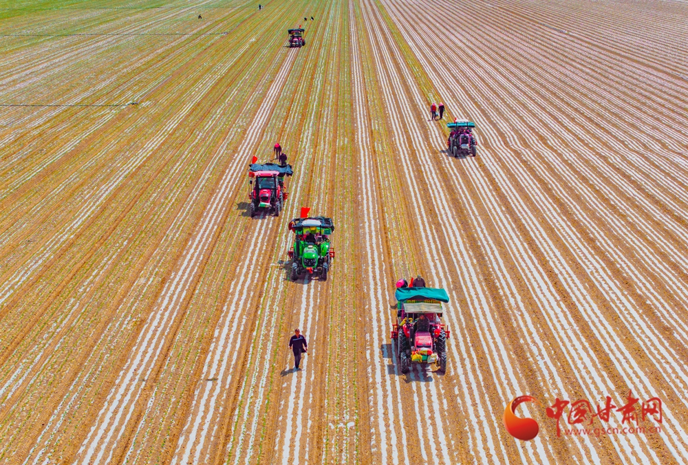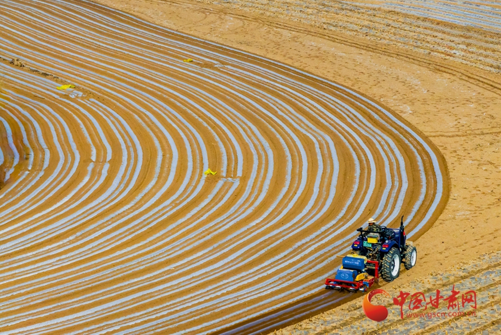 春日,走进定西临洮的田间地头,一垄垄覆膜蜿蜒如银色丝带,在暖阳下泛起粼粼波光。洮河水畔,杏花初绽,村民们正弯腰点种、培土压膜。新翻的泥土气息混着花香弥漫田间。农机轰鸣处,白膜与蓝天相映,勾勒出黄土高原上最动人的春耕画卷。