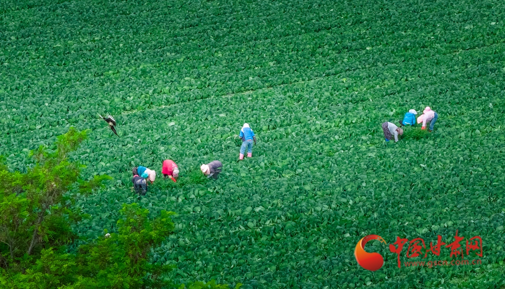 农人们在田间忙碌穿梭,为作物做着精细管护