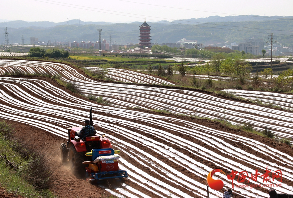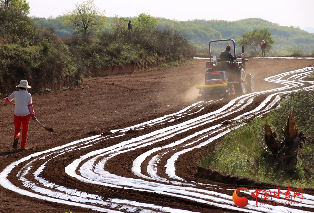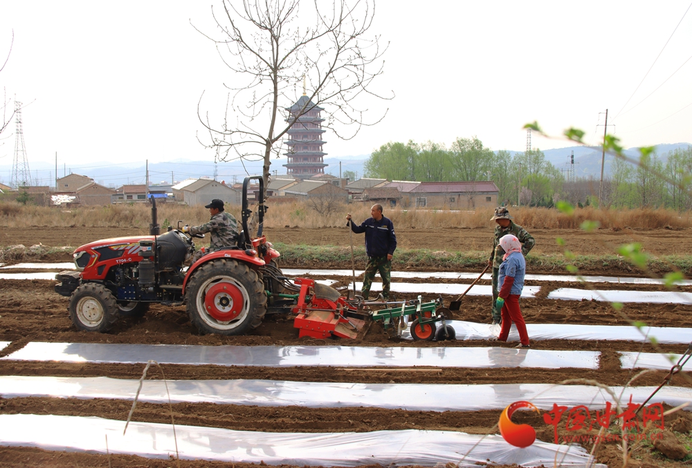 拖拉机在田垄间划出规整的覆膜线条,农人挥锄劳作
