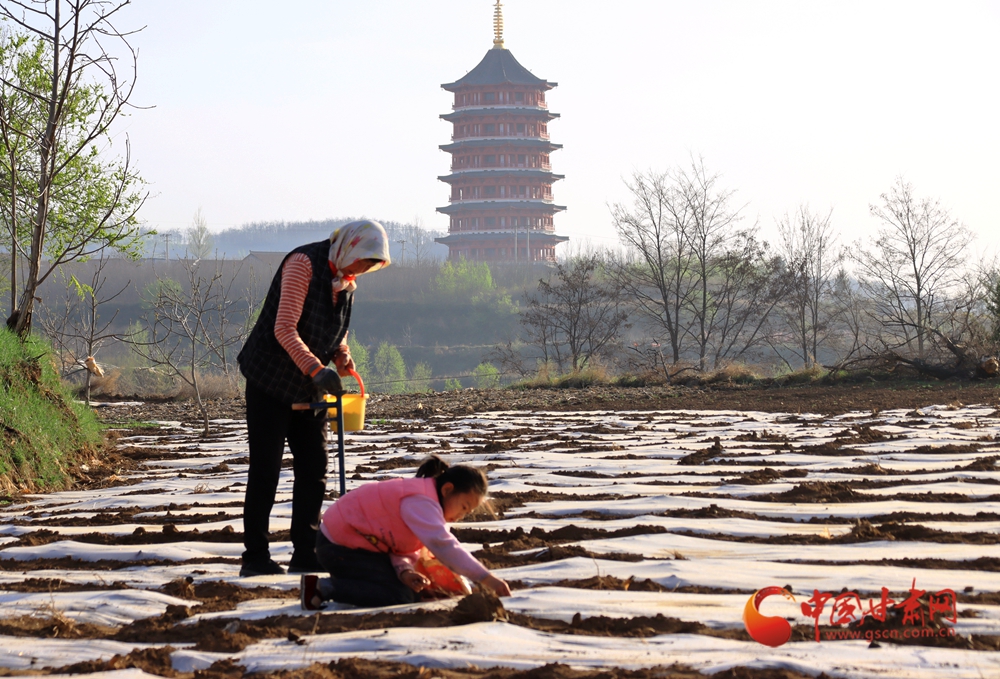 春动陇原丨华亭:凤仪宝塔花满廊 蒋家塬上春耕忙