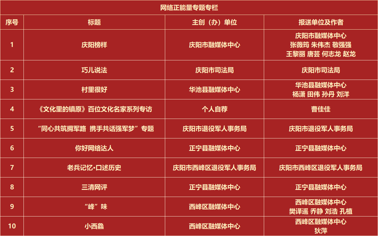 中国甘肃网6件作品入选庆阳市第四届网络正能量精品