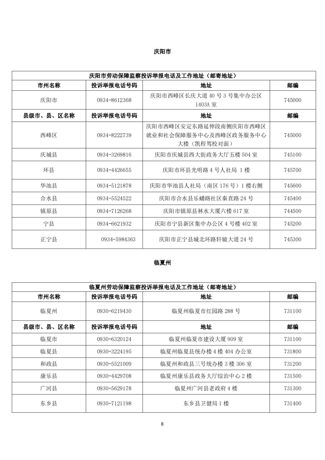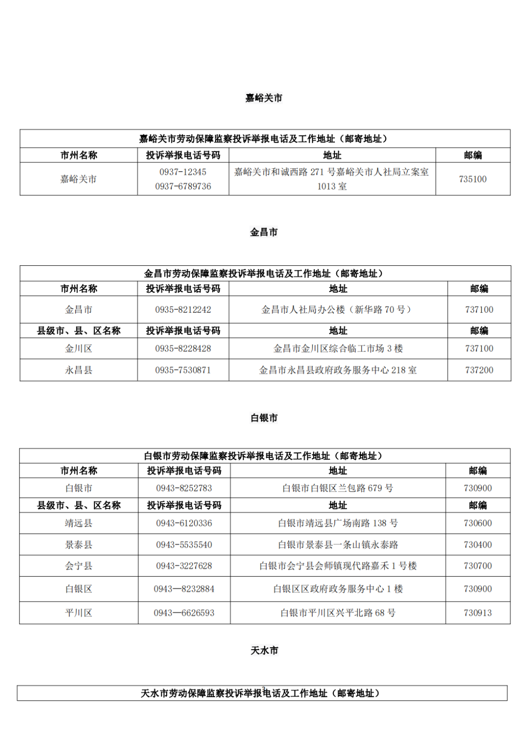 方式二:可到务工所在地的劳动保障监察机构进行投诉,也可直接拨打以下电话进行举报投诉。