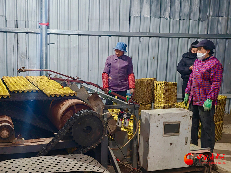 西和县六巷乡下巷村,一座新建的鸡蛋托生产车间在冬日里持续运转。机器规律的嗡鸣声中,工人们熟练地将一张张以再生纸为原料的蛋托整理、装箱。这批产品即将发往陕西、山西等多个省份,进入千家万户。