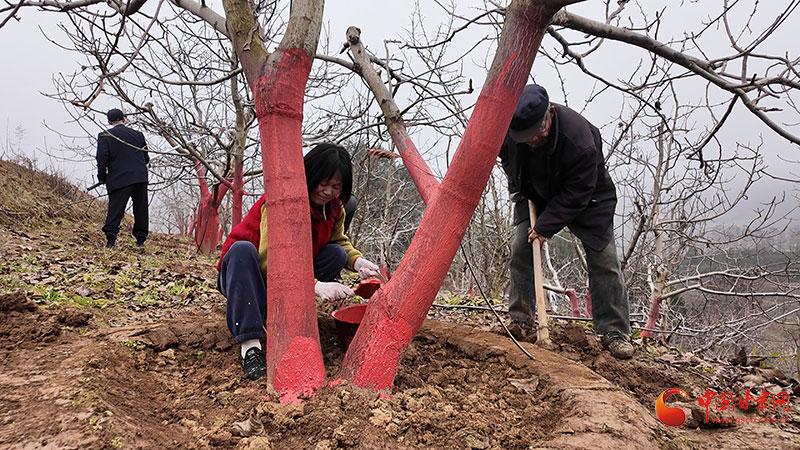 群众正在对核桃树进行冬季管护 刘镇/摄