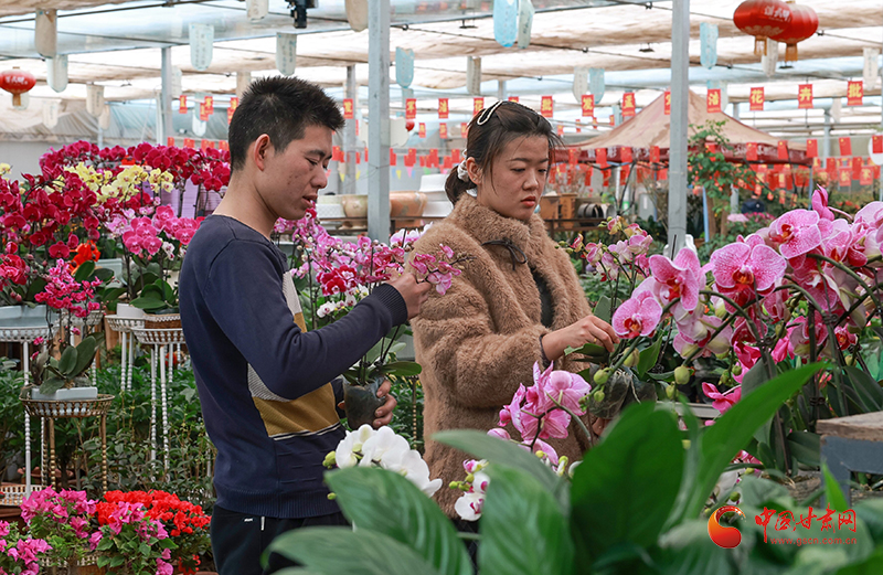 1月31日,甘肃省酒泉市泰禾花卉博览园内花卉迎来销售旺季,众多市民纷纷选购五彩缤纷的鲜花喜迎新春佳节的到来。