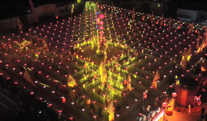 据了解,“九曲黄河灯阵”是流传了上千年的文化遗产,由365盏明灯组成,按照习俗如果不碰到这灯杆,能顺利走出这九曲十八弯迷宫,则意味着吉祥如意,幸福平安。高台九曲黄河灯阵2011年列入第三批甘肃省非物质文化遗产名录。“我们转灯就图个红火、吉利、平安,希望我们来年有个好的收成,六畜兴旺、五谷丰登。”黑泉镇镇江村村民杨文学说道。