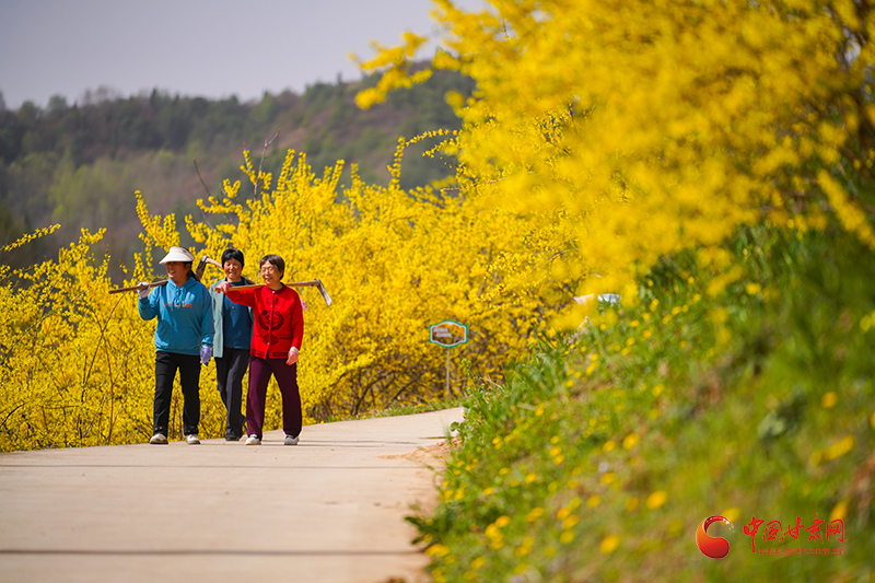 沙坝镇的山野间,万亩连翘花如期绽放 陈争强/摄