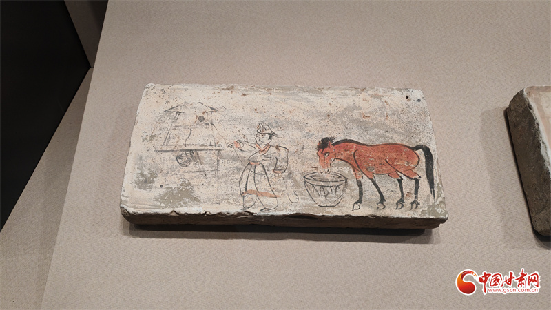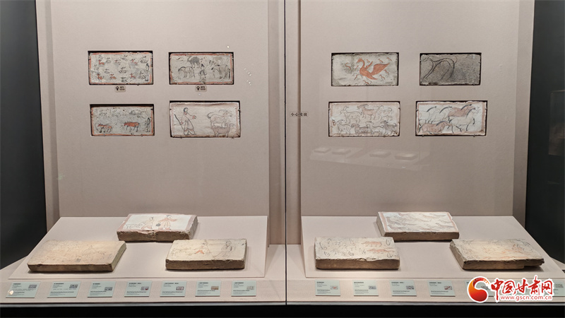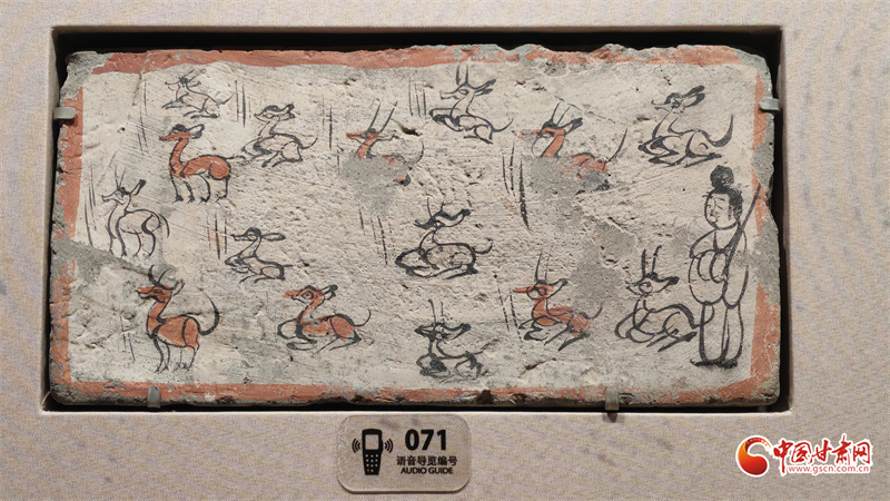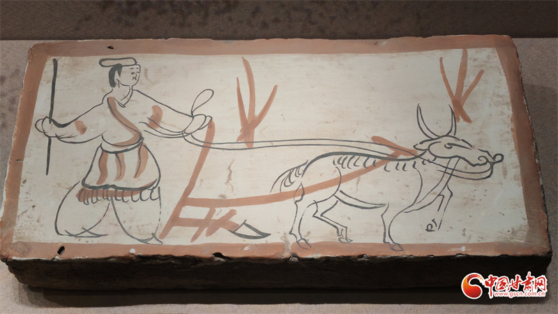 在博物馆的“古冢丹青——高台魏晋十六国时期墓葬壁画艺术陈列”展厅里,记者看到,《二牛耕地画像砖》生动再现了当时的农耕技术:两头耕牛架着直辕犁,后随的男子一手扶犁一手扬鞭,展现了典型的“二牛抬杠”耕作方式。《牧鹿图壁画砖》则描绘了古人放牧鹿群的独特场景,为研究当时的畜牧业发展提供了珍贵资料。