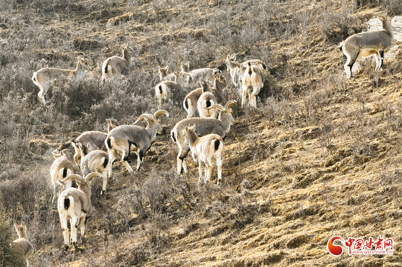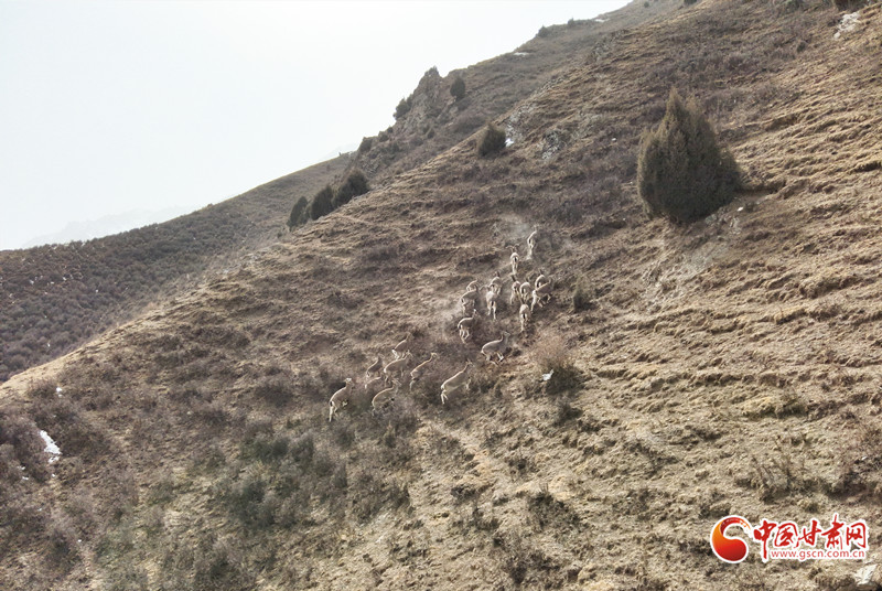 “岩壁精灵”岩羊群现祁连山民乐段 生态向好添力证