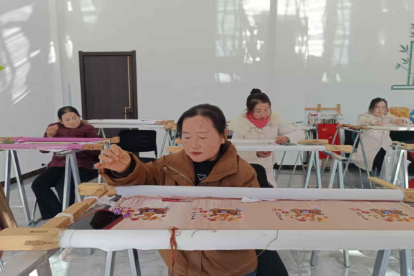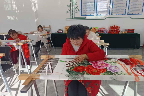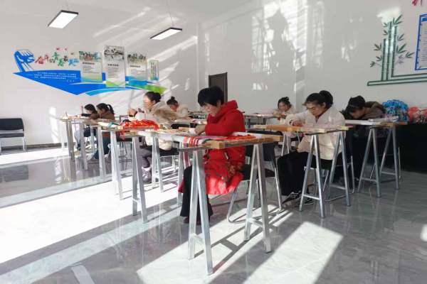 基地先后被评为省市区残疾人就业基地、全市民族手工业融合创新基地,并被冠以“美丽工坊”之名,为残疾、贫困女性提供技能培训与就业岗位。公司创始人左焕茸作为非遗代表性传承人,始终秉持“授人以渔”的理念:“刺绣是庆阳的文化根脉,更应是女性改变命运的力量。”